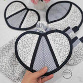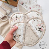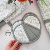 + موارد بیشتردستگیره قلبی مدرن شامل دو عدد دستگیره میباشد ، دارای طرح و رنگ زیبا و پارچه کتان نخ هست که در برابر حرارت مقاومت مناسبی دارند . الیاف میانی دستگیرهها پشم و شیشه هست و حتی داخل جیبها هم پشم و شیشه کار شده که در این صورت بین دست و جسم داغ ۷لایه متشکل از پارچه کتان نخ و پشم و شیشه قرار میگیرد. طراحی مناسب این دستگیره باعث شده دستها براحتی در داخل جیبها قرار بگیرند و جسم داغ بدون صدمه دیدن گرفته شود.