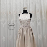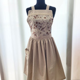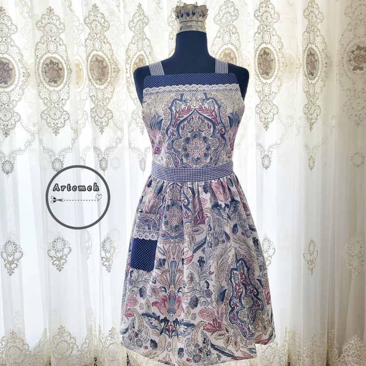 پیشبند تک دامنه با بالاتنه مربعی دارای لایه ضدآب هست هم قیمت بالاتنه و هم قسمت دامن پیشبند . بندها بصورت کره زدنی هستند .پارچه استفاده شده کتان نخ هست
